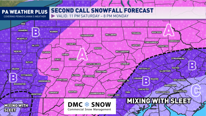 Second Call Snowfall Forecast for Major Pennsylvania Weekend Winter Storm