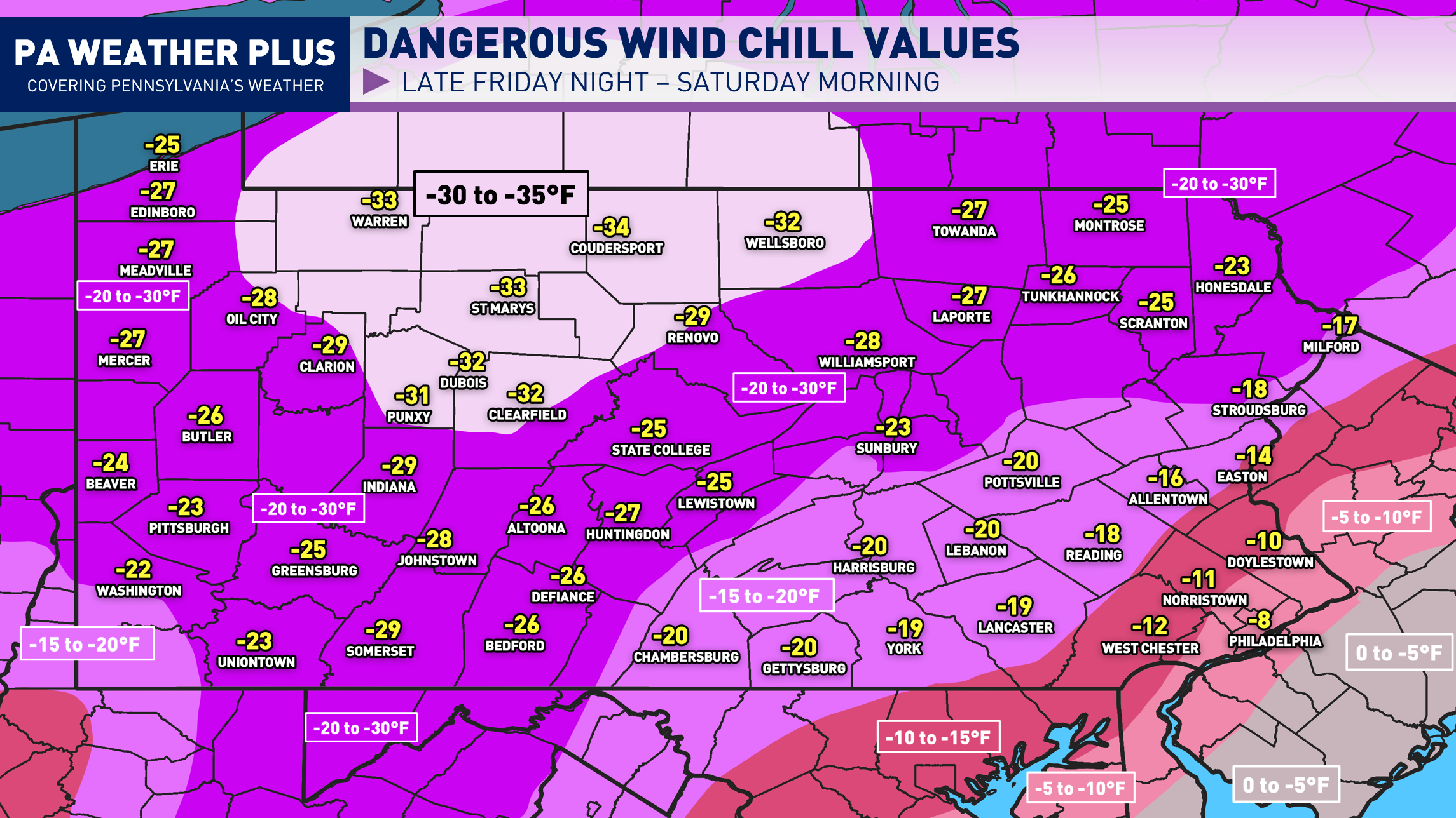 PENNSYLVANIA WIND CHILL FORECASTS: