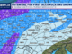 AREA A: A few snow showers mixed with rain showers are expected 3 – 11 AM Thursday morning. Snow accumulations are not expected; however, a quick coating in a heavier burst may occur on elevated surfaces.