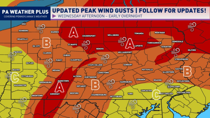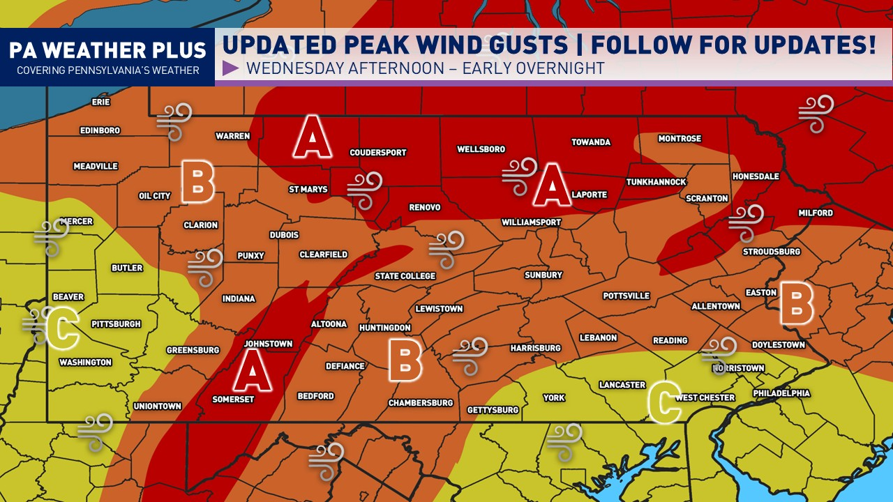 PENNSYLVANIA WIND GUST FORECAST & IMPACTS