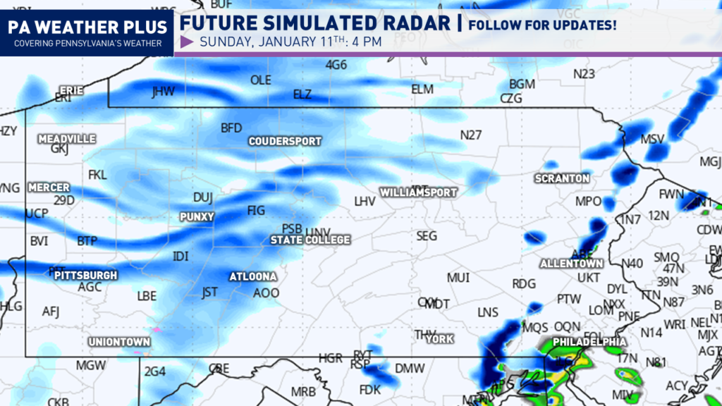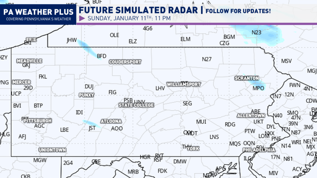 After a brief January thaw, we are back to real Pennsylvania January weather as a cold front helps to return snow showers and snow squalls across the state. This blast of colder air will also help to bring additional light snowfall accumulations to northwestern Pennsylvania and the Laurel Highlands. Let’s jump into the details!